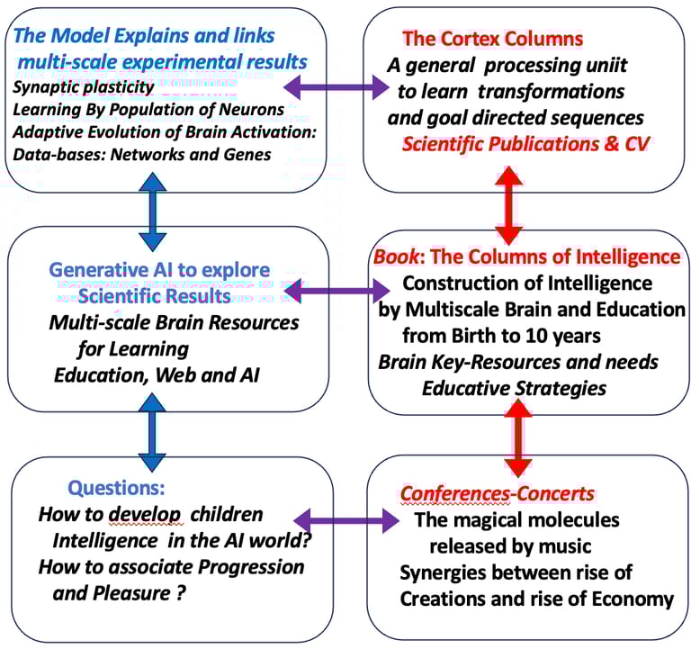 My scientific work : We have produced about 100 Scientific articles on the multiscale properties of Cortical Columns for learning in associative and frontal areas, both for sensorymotor transformations and doal-directed programs. We propose a unified model of the Cortex Column whic explains multi-scale experimental results.